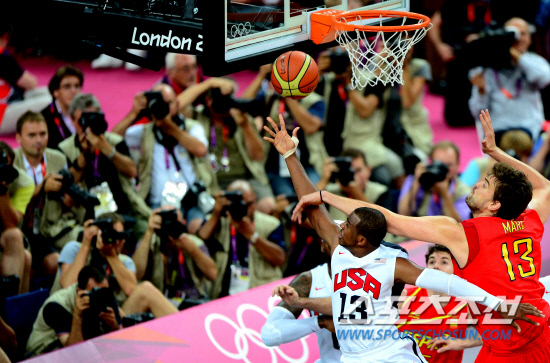 미국 남자 농구 드림팀이 금메달을 획득하며 올림픽 2연패를 달성했다. 12일 런던 노우스 그린위치 아레나에서 열린 스페인과 결승전에서 미국은 스페인에 107-100으로 승리하며 금메달을 따냈다. 크리스 폴이 스페인 마크의 수비를 피해 레이업슛을 성공시키고 있다.