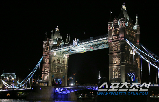 2012 런던올림픽이 폐막한 12일 밤(현지시간) 런던 템스강의 명물인 타워브릿지 중심부에 설치된 오륜마크가 접혀, 폐막 분위기가 고조되고 있다. 20120812 런던=올림픽사진공동취재단m