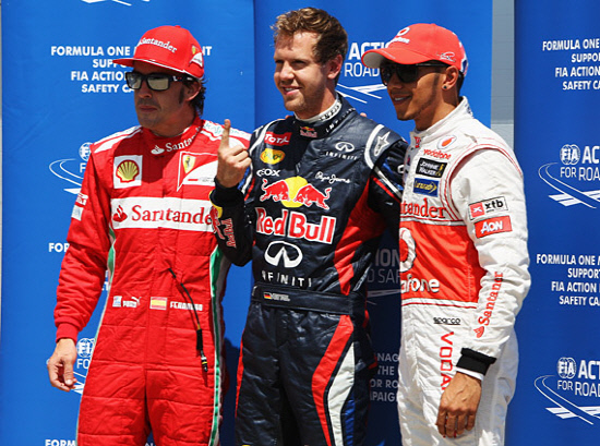 페라리의 페르난도 알론소가 올시즌 F1 종합챔피언을 두고 레드불의 세바스티안 베텔과 맥라렌의 루이스 해밀턴을 최대 경계 대상으로 지목했다.