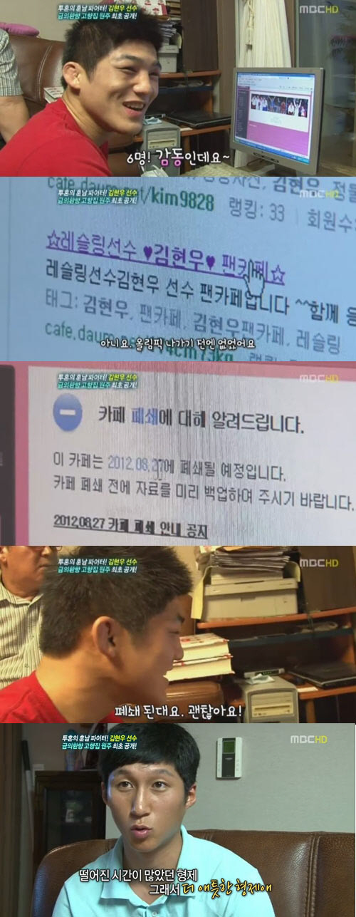 김현우는 "올림픽 이전엔 팬 카페도 없었는데 팬 카페가 생겼다. 그런데 회원수가 6명이다. 그래도 감동이다"며 폭소했다.