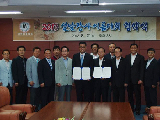 대한씨름협회는 21일 군산시청에서 설날장사씨름대회 협약식을 가졌다. 이번 협약에 따라 군산시는 2013년부터 2015년까지 3년간 설날을 전후해 4일 간의 대회를 유치하게 됐다. 최태정 대한씨름협회장은 "씨름협회와 군산시가 손을 잡아 성공적인 대회를 개최했으면 좋겠다"는 바람을 나타냈다.