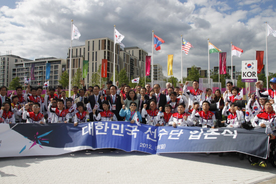 런던장애인올림픽 개막을 3일 앞둔 26일 한국선수단 입촌식이 치러졌다. .