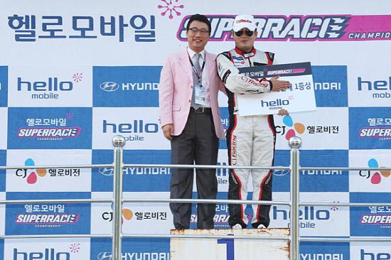 26일 태백레이싱파크에서 열린 헬로모바일 슈퍼레이스 5전에서 민우(CJ레이싱)가 헬로비전의 4등 후원상을 수상했다.