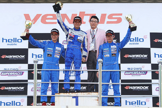 26일 태백레이싱파크에서 펼쳐진 2012 헬로모바일 슈퍼레이스 챔피언십 제5전에서 카레이싱 입문대회인 벤투스 클래스에 출전한 원정민(GHP팀)이 시즌 4번째 경기에서 첫 우승을 차지했다. 신형철과 김태호(이상 그레디 레이싱)는 각각 2위, 3위를 차지했다.