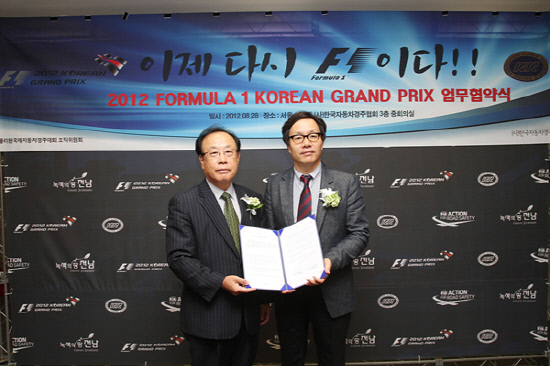 F1 코리아 그랑프리 운영조직인 전라남도 F1국제자동차경주대회 조직위원회(이하 F1 조직위)와 모터스포츠 주관단체인 (사)한국자동차경주협회(이하 KARA)가 대한민국 세 번째 F1의 성공 개최를 위해 손을 맞잡았다.