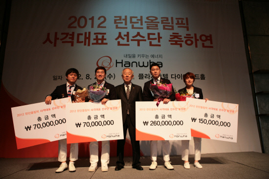한화그룹이 사격 올림픽대표팀에게 역대 최고액인 8억여원의 포상금을 지급했다.