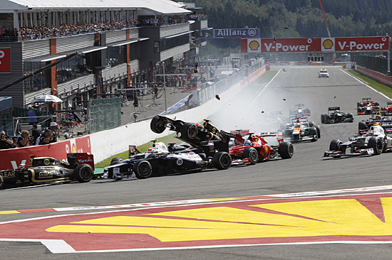 O..로터스팀의 로만 그로장이 다음 이탈리아 몬자서킷에서 열리는 F1 대회에 출전 정지를 당했다. 그로장은 지난 주말 벨기에 그랑프리에서 맥라렌의 루이스 해밀턴에 이어 페라리의 페르난도 알론소와 연달아 충돌해 1경기 정지와 5만달러(한화 약7천만원)의 벌금 결정을 당했다. 사고후 조사에 따르면 "그로장의 이번 레이스는 타인에게 부상을 입힐 가능성이 높고 중대한 규정을 위반했다"고 판결을 받았다. 로터스팀은 다음 몬자 그랑프리에서 키미 라이코넨과 함께 그로장 대신 제롬 담브로시오 선수가 레이스에 참여할 것으로 보인다. 그로장으로부터 시작된 충돌사고로 루이스 해밀턴, 자우버의 세르지오 페레즈, 페르난도 알론소가 리타이어하는 난국을 맞았다.