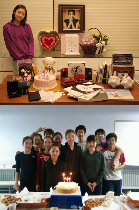 사진에는 보라색 후드 티셔츠를 입은 김연아가 팬들로부터 받은 선물들을 진열해 놓고 포즈를 취하고 있다. 케이크를 비롯한 다양한 선물을 받은 김연아는 팬들에게 "생일 축하해 주셔서 감사해요!"라는 인사의 글도 남겼다.