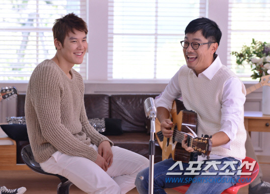 6일 오전 11시부터 오후 5시까지 진행된 뮤직비디오 현장은 달콤했다. 9월 중순 음원공개를 앞둔 조원민의 첫 디지털 싱글 타이틀 '첫눈'의 선율이 스튜디오를 가득 채웠다. '사랑해 첫눈에 말하고 싶었어, 첫눈에 그댄 걸 알았어, 지금처럼 항상 나의 곁에서 같은 꿈을 꾸기 바래.' 사별한 아내를 그리며 만든 첫사랑 노래라고 했다. 물살만 가르느라 연애 한번 제대로 못한 동생 박태환을 위한 노래라고도 했다. 마이크를 앞에 놓고 박태환이 가수처럼 노래를 부르기 시작했다. 감미로운 선율에 박태환이 익숙하게 리듬을 탔다. 물속에서 세계 최고를 자랑하는 리듬감은 음악을 듣는 귀에서도 남달랐다. "오는 길에 손석배 지원팀장의 차에서 한번 들은 것이 전부"라더니, 이내 익숙한 립싱크를 시작했다. 박자도, 가사도 놓치지 않았다. 가사를 한두번 봤을 뿐인데, 금세 통째로 외워버렸다. 영리했다. 이내 오케이 사인이 떨어졌다. 조원민이 엄지를 번쩍 치켜올렸다. "태환이는 센스가 정말 뛰어나다. 운동선수의 순수성과 스마트함을 겸비했다. 가사 해석력, 적응력도 빠르다"고 칭찬을 쏟아냈다. "태환이의 마음씀씀이에 용기를 얻었다. 그 마음이 내게 에너지가 된다. 딸에게 자랑스러운 아빠가 되고 싶다"며 선한 눈매로 웃었다.