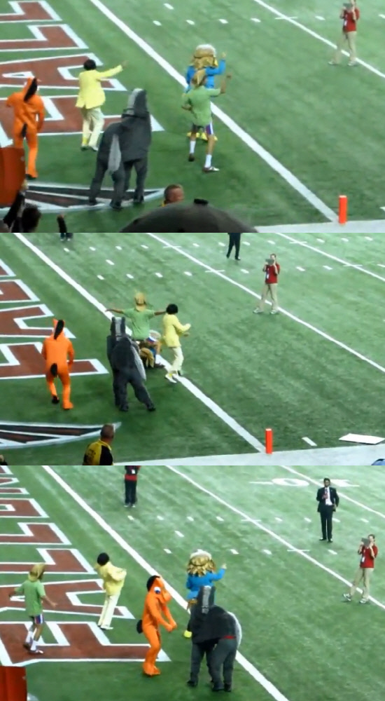 지난 18일(한국시각) 조지아주 애틀랜타 조지아돔에서 열린 애틀랜타 팔콘과 덴버 브롱코스의 경기 직전, 싸이의 '강남 스타일' 음악이 흘러나오면서 홈팀에서 마련한 공연이 시작됐다.