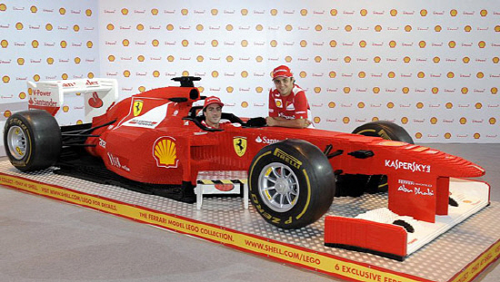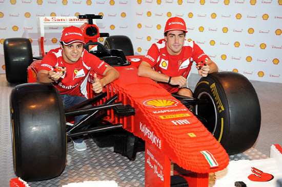 페라리와 쉘은 지난 21일 싱가포르에서 F1 그랑프리 500경기 출전을 기념해 실물 크기의 레고 페라리 150°을 공개했다. 레고 페라리는 레고 전문가 16명이 설계 및 계획만 6개월이 걸렸고 수십 만개의 레고 블록을 설치하는데 열흘이 걸렸다. 실제 드라이버가 탑승할 수 있는 레고 페라리는 이벤트에 참가한 페르난도 알론소와 펠리페 마사가 조종석에 들어가기도 했다.
