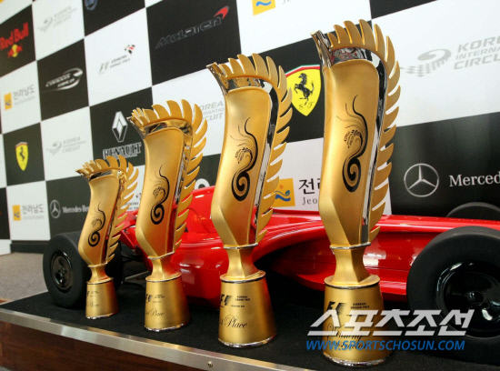 올해 F1 코리아 그랑프리에서 사용될 트로피. 오른쪽부터 우승팀, 드라이버 1위, 2위, 3위에 수여될 트로피.
