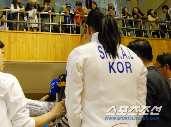제93회 전국체육대회 펜싱 경기가 열리고 있는 12일 대구 정화여고 체육관 앞. 현장을 떠나던 한 취재진은 고개를 절레절레 흔들었다. 가는 곳마다 구름관중을 몰고 다녔다. 정화여고와 정화중 학생들만이 아니라 근처에 있는 시민들도 모여들었다. 이들이 보고 싶은 선수는 단 한명이었다. 바로 '런던 1초 눈물의 주인공' 신아람(계룡시청)이었다.