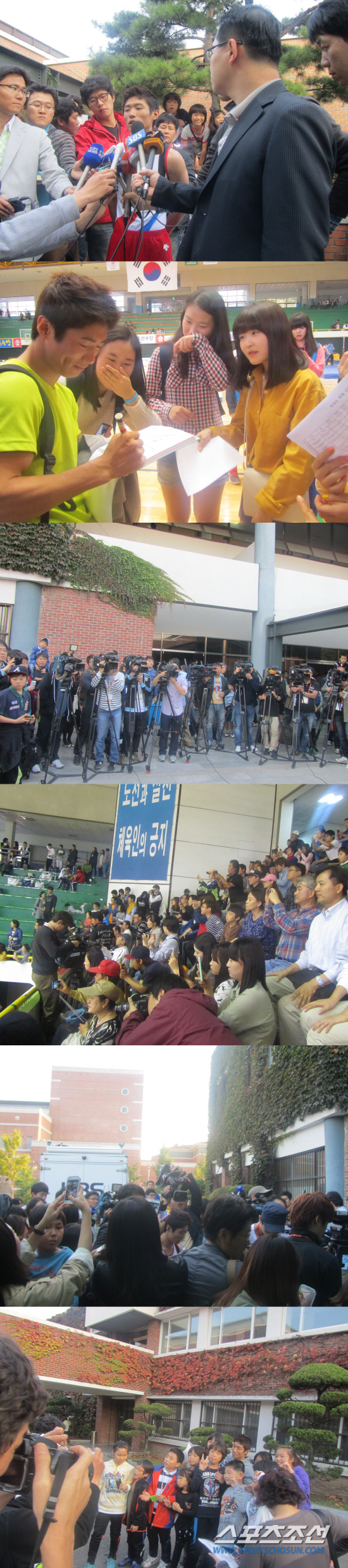 체전 무대에 이처럼 많은 관중들이 찾아온 것은 처음이다. 관중들의 뜨거운 환호가 클린연기의 원동력이 됐다. "가슴이 둥둥 뛰었다"고 표현했다. 강심장답게 구름관중앞에서 200% 실력을 발휘했다. "말이 안통하는 외국 관중들보다 국내 관중들의 환호가 큰 힘이 된다"며 환하게 웃었다. 경기장을 나서자마자 팬들 속에 휩싸여 옴쭉달짝 할 수 없는 상황이 됐다. 끝까지 웃는 얼굴로 감사를 표했다.