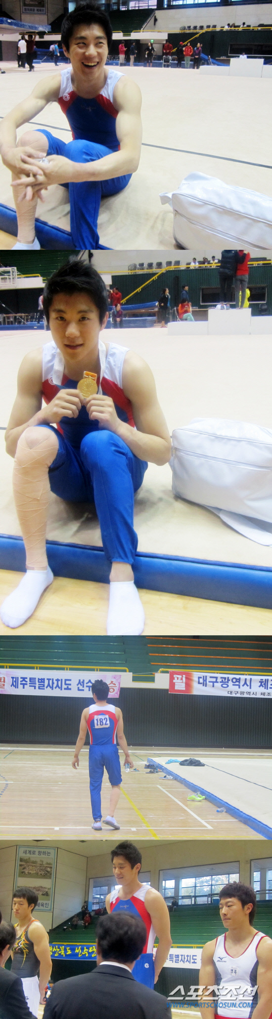 국가대표 김지훈의 소속팀 서울시청은 전날 단체전에서 경기에 이어 4위에 그쳤다. 지난해 금메달을 딴 '디펜딩챔피언'으로서 자존심이 상했다. 김지훈의 부상이 뼈아팠다. 평행봉 착지에서 무릎으로 떨어졌다. 이어진 철봉 종목 착지 과정에서 또다시 다리를 접질렸다. 김지훈은 극심한 고통을 호소했다. 코치의 부축을 받고 포디움을 빠져나간 이후 한참동안 일어서지 못했다.