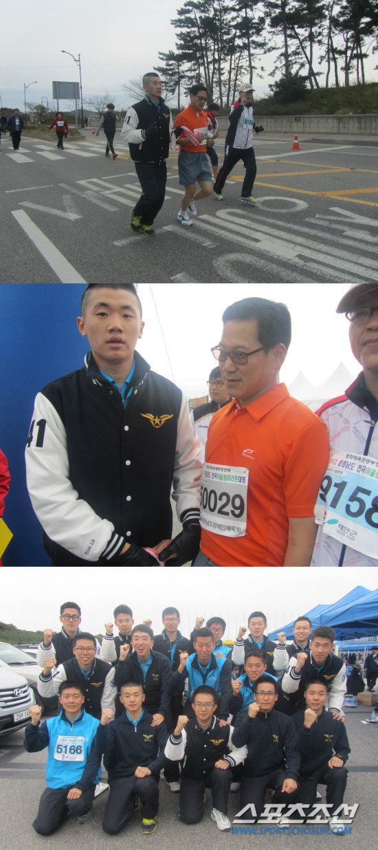 | ◇한서대 공군학군단 사관후보생 35명이 시각장애인들의 파트너로 나섰다. 충남시각장애인스포츠연맹회장인 한창석씨는 한서대 사관후보생 연정흠군과 함께 달렸다. 굳게 맞잡은 손을 수건으로 묶은 채 5㎞를 완주한 후 안정적인 레이스를 이끌어준 파트너에게 고마움을 표했다. |