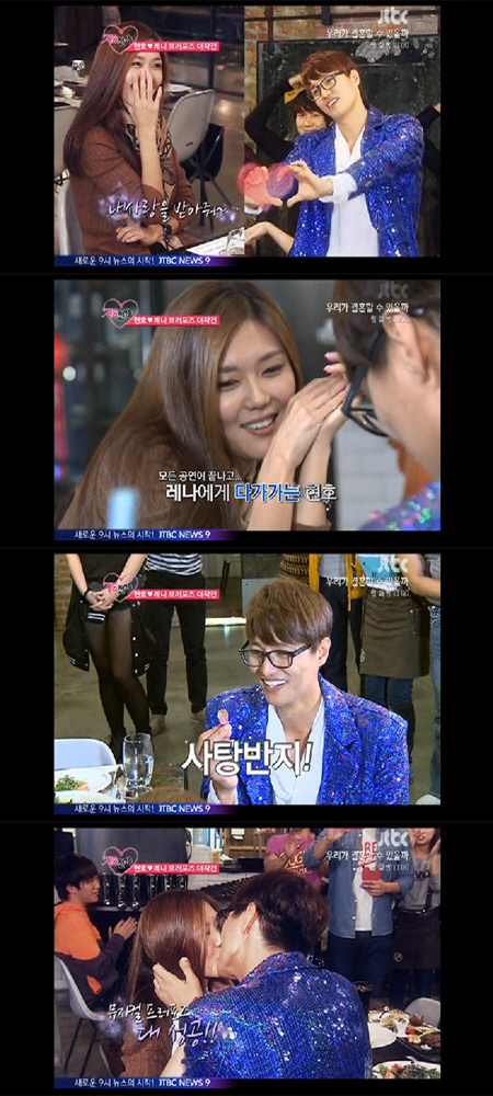 홍레나 앞에 무릎을 꿇은 최현호는 "많이 부족해서 자기한테 해줄 수 있는 게 이것 밖에 없다"며 수줍게 사탕반지를 내밀어 웃음을 자아냈다. 이에 홍레나는 환한 미소를 띠며 반지를 받아 사랑을 확인했다.