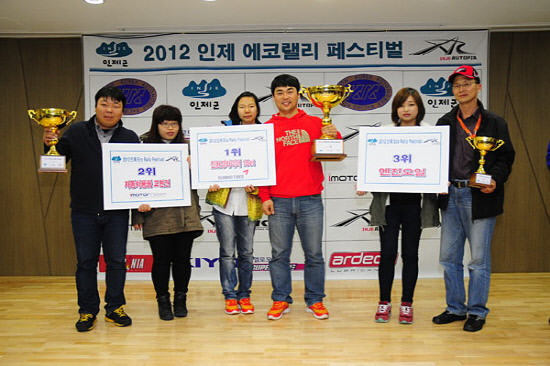 지난 10~11일 강원도 인제군 일원을 무대로 펼쳐진 2012 인제 코리아 에코 랠리 페스티벌에서 양영식·황현실(전북 익산시)과 강귀로·김영선(서울시 금천구)팀이 각각 가솔린과 디젤 부문 우승컵을 안았다.