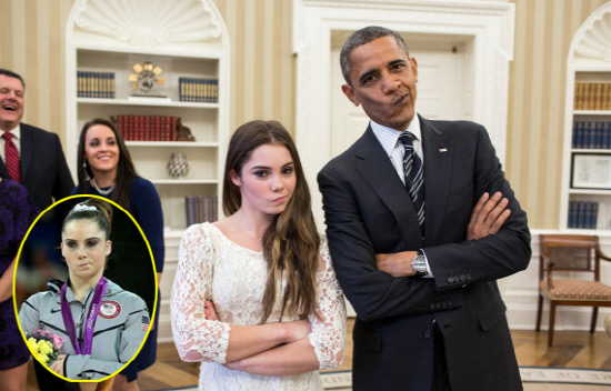 버락 오바마 미국 대통령이 16세 체조요정과 함께 이색 표정을 취한 사진이 눈길을 끌고 있다.