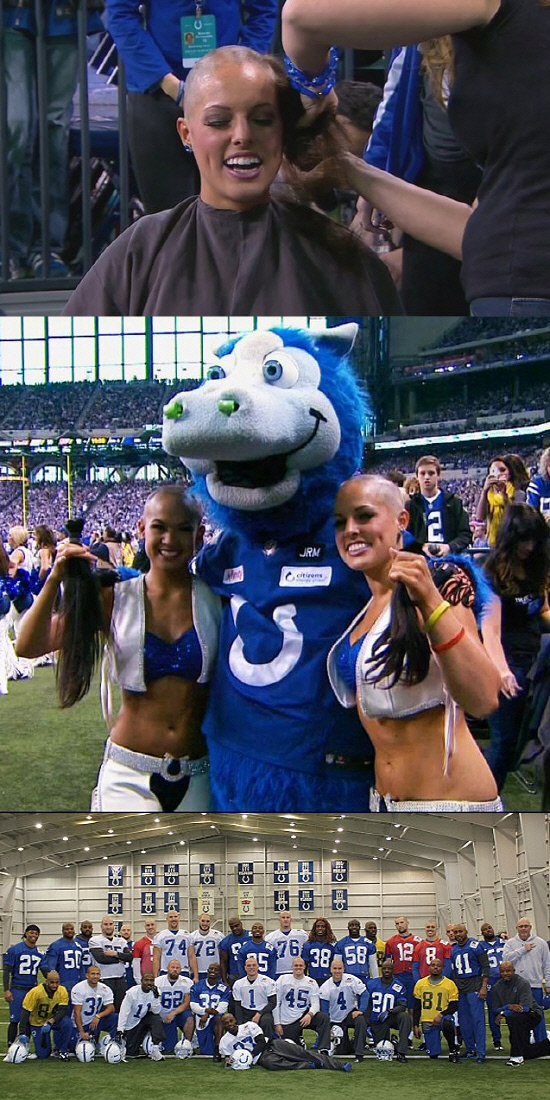 미국프로풋볼(NFL)의 명문 인디애나폴리스 콜츠 선수들은 11월 초부터 완전히 삭발한 채 경기를 뛰고 있다.