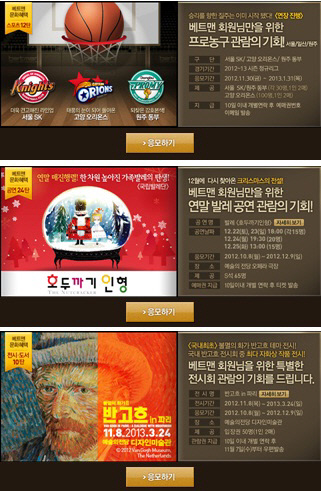 이와 함께 빈센트 반 고흐의 작품을 관람할 수 있는 '반 고흐 in 파리' 전시회 관람권을 증정하는 컬처라운지 전시·도서 이벤트 10탄가 12월 9일까지 진행된다. 이번 이벤트는 벳볼 100개 이상을 보유한 베트맨 회원은 누구나 응모가 가능하며 추첨을 통해 선정된 50명에게 전시회 관람권을 제공한다.