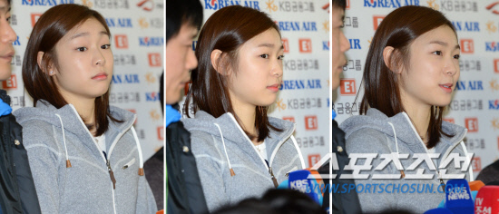 피겨여왕 김연아가 돌아왔다. 김연아가 독일 도르트문트에서 개막되는 NRW 트로피대회에 출전하기 위해 5일 인천공항을 통해 출국하기 전 류종현 신혜숙 코치와 함께 인터뷰를 하고 있다. 김연아는 작년 4월 러시아 모스크바 세계선수권을 끝으로 국제무대에서 모습을 보이지 않았지만 2014년 소치동계올림픽까지 현역 생활을 연장하겠다고 밝혔다. NRW 트로피대회는 최정상급 선수들은 출전하지 않는 B급 대회지만 김연아의 복귀 무대로 주목받고 있다. 인천공항=허상욱 기자 wook@sportschosun.com/2012.12.05/
