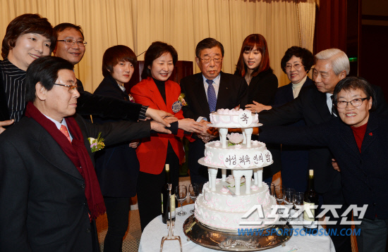 11일 오후 6시30분 서울 송파구 방이동 올림픽파크텔 올림피아홀에서 열린 제24회 윤곡여성체육대상 시상식에서 정현숙 여성스포츠회 회장은 윤곡상을 제정하고 지원하는 김 부위원장을 향해 "김운용 회장님 감사합니다. 사랑합니다"라는 말로 여성스포츠인을 대표해 특별한 감사인사를 전했다. 김 전 부위원장은 축사를 통해 "여성체육인 전체의 이름으로 수상자에게 영광을 드리는 것"이라며 윤곡상의 의미를 설명했다. "2012년 런던올림픽은 복싱까지 여성선수를 파견하면서 한국 스포츠 사상 최초로 전종목에 남녀 선수가 똑같이 참가한 대회였다. 런던올림픽에 참가한 선수 중 44.4%가 여자선수였다. 미국의 경우 49개 금메달 중 29개를 여자선수들이 따냈다. 런던올림픽에서 우리나라 여성선수들의 활약도 눈부셨다. 지금 세계는 여성 지도자 전성시대다. 꿀리지 말고 당당하게 리더가 되도록 노력하길 바란다"는 말로 격려를 아끼지 않았다. 이날 시상식에는 김 부위원장을 비롯 김용환 문화체육관광부 제2차관, 이에리사 새누리당 의원, 박종길 태릉선수촌장 등 내빈들이 참석해 자리를 빛냈다.