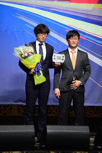 제7회 한국모터스포츠 어워즈 2012 '올해의 신인상'에는 이건희(모터타임) 선수가 선정됐다. 시상자 F1대회조직위원회 신건석 협력 본부장.