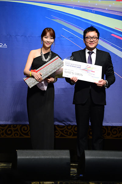 제7회 한국모터스포츠 어워즈 2012 '올해의 레이싱퀸상'은 고정아(금호타이어)가 선정됐다. 쉬즈유리스에서 제공하는 50만원 상당의 화장품 세트를 부상으로 받았다. 시상자 네이버 자동차 고석원 실장.