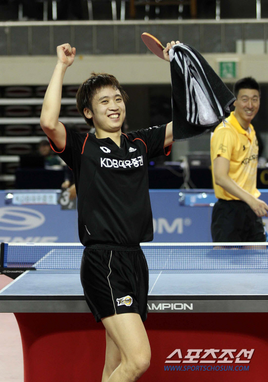 김 감독의 예상대로 결승전은 초박빙이었다. 한치 양보없는 진검승부였다. 일진일퇴를 거듭했다. 정영식이 첫세트를 12-10으로 따내자, 2세트를 오상은이 11-8로 따냈다. 정영식이 3세트를 11-5로 따내자, 오상은이 다시 4세트를 11-9로 잡았다. 5세트를 11-4로 가볍게 이기며 오상은이 예약하는가 싶었던 순간 정영식 특유의 끈질긴 파이팅이 빛을 발했다. 6-7세트를 잇달아 따내며 세트스코어 4대3으로 극적인 우승을 완성했다. '차세대' 정영식의 우승은 '집단 탁구지성'의 결집이라는 점에서 더욱 의미 있었다. '레전드' 김택수 감독, 형님같은 최현진 코치의 애정어린 지도에 '에이스' 오상은이 가세하며 정영식의 탁구는 성장했다. 1년전 KGC인삼공사 해고 후 대우증권 유니폼을 입은 오상은은 후배 정영식에게 자신의 탁구 필살기를 아낌없이 전수했다. 김 감독은 약점으로 지적돼온 정영식의 스윙과 서브를 집중조련하는 한편 오상은 윤재영 등 베테랑들과 차세대들의 '만원내기' 맞대결 매치를 수시로 열어 경쟁과 성장을 부추겼다. 정영식은 우승 인터뷰에서 "내 실력이 좋아서 이긴 게 아니라 상은이형이 기술을 전수해 준 덕분"이라며 겸손해 했다. "내가 잘못하는 잔플레이, 네트플레이, 코스 공략법을 다 가르쳐주셨다. 어떻게 보면 오늘 상대의 전력을 모두 파악하고 나선 셈"이라며 선배에게 공을 돌렸다.