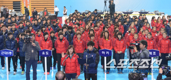 올림픽 펜싱 금메달리스트이 김지연이 나란히 서서 선수 대표선서를 했다. 겨울미남, 여름미녀의 당찬 선서가 든든했다. 체조 양학선 양궁 기보배 펜싱 구본길 신아람 최인정 등 런던 메달리스트들도 다시 초심을 다졌다. 최광식 문화체육관광부 장관, 박용성 대한체육회장, 이연택 대한체육회 명예회장, 한선교 국회 문화체육관광방송위원장(새누리당 의원), 이에리사 새누리당 의원 등 내빈들이 새마음 새뜻으로 한해를 여는 선수들을 응원했다.