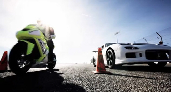 대결에는 콜벳 엔진을 장착해 375마력의 출력을 내는 마쯔다 RX-7 차량과 175마력의 카와사키 ZX-10 바이크가 사용됐고 프로 선수들이 운전대를 잡았다.