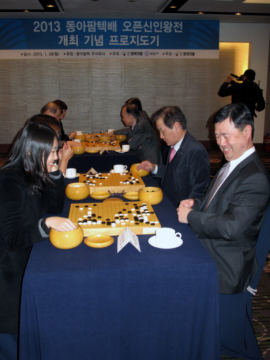 입단 1~3년차 프로기사와 한국기원 소속 연구생이 동등한 자격으로 경합하는 2013 동아팜텍배 오픈신인왕전을 기념하는 프로지도기가 1월 28일 강남구 역삼동에 위치한 노보텔 앰버서더 강남에서 열렸다.