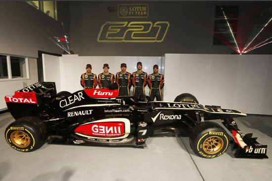 로터스 F1팀은 28일(현지시간) 영국 엔스톤에 위치한 본사에서 2013년형 뉴머신 'E21'을 공식 발표했다. 올시즌 F1팀 가운데 가장 먼저 경주차를 선보인 로터스 신차 발표회는 한국시간으로 29일 새벽 4시15분 유튜브와 스카이 스포츠 뉴스를 통해 전세계 생중계됐다.