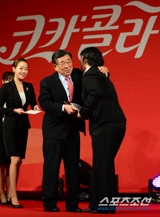 김운용 전 국제올림픽위원회(IOC) 부위원장(82)이 아끼는 선수 장미란의 공로상 시상을 위해 무대에 올랐다. 코카콜라체육대상 초대 공로상 수상자인 김 부위원장의 얼굴에 흐뭇한 미소가 번졌다. 은퇴 기자회견에서 IOC선수위원 도전의 뜻을 밝힌 '기특한 후배' 장미란의 어깨를 두드리며 앞날을 축복하고 격려했다. 해외출장으로 30일 오후 늦게 귀국한 김 부위원장은 바쁜 일정속에서도 런던올림픽에서 선전한 태극전사들의 시상식 일정을 꼼꼼히 챙기는 열정을 보여줬다.