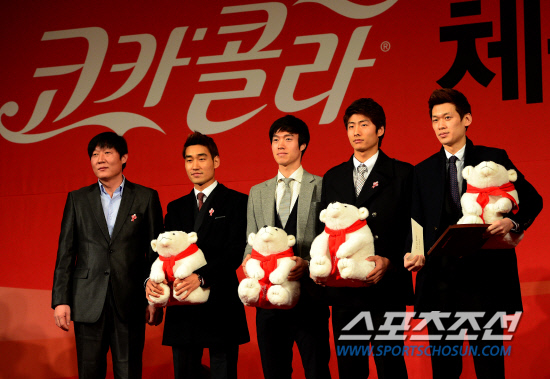 31일 서울 하얏트호텔 그랜드볼룸에서 제18회 코카-콜라 체육대상 시상식이 열렸다. 코카-콜라 체육대상은 1995년 창설됐으며 한국 코카-콜라가 아마추어 스포츠 육성 및 한국 스포츠 발전을 위해 우수 선수를 발굴하고 지원하는 국내에서 가장 오래된 아마추어 스포츠 시상식이다. 우수단체상을 수상한 남자펜싱대표팀 선수들이 시상자로 나선 김영호 감독과 함께 포즈를 취하고 있다. 한남동=송정헌 기자 songs@sportschosun.com/2013.1.31 |