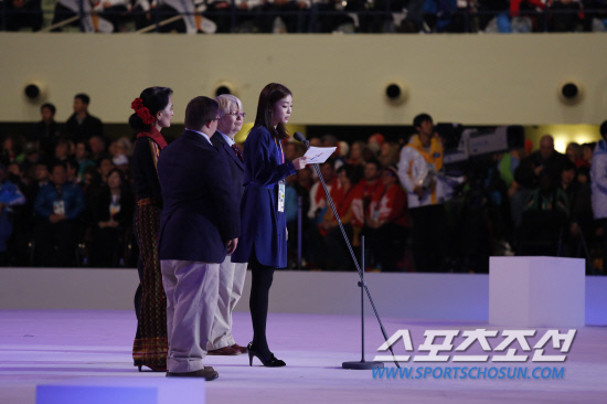 '피겨여제' 김연아(23)와 '인권의 상징' 아웅산 수치 여사가 개막식에서 한무대에 섰다. 김연아는 글로벌 리더 자격으로 수치 여사와 2명의 지적장애인의 손을 잡고 무대에 올랐다. "당신의 꿈은 무엇입니까." 김연아가 지적장애인들에게 꿈을 묻는 순간은 아름다웠다. "이제 내 꿈은 당신의 꿈을 이룰 수 있도록 돕는 것입니다." 전세계 106개국 3014명의 선수단이 김연아, 수치 여사와 함께 "투게더 위 캔!(Together we can!)"을 외쳤다. 개막식에서 가장 특별한 순간이었다.