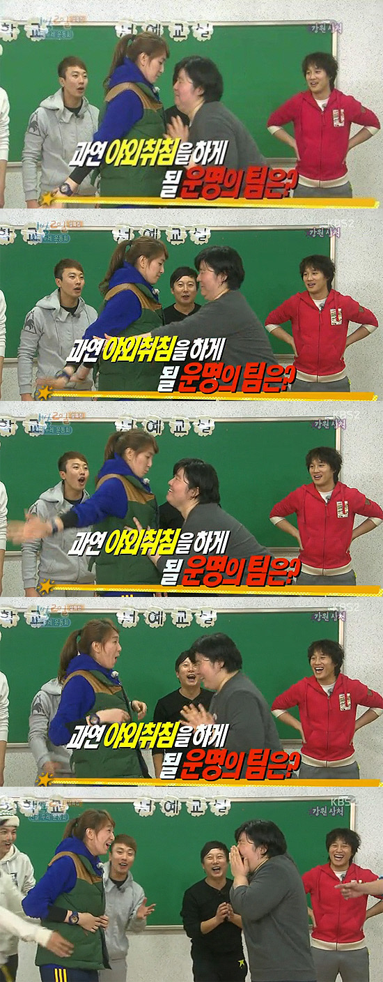 다음 주 예고편에는 야외취침의 운명이 걸린 잠자리 복불복 게임을 진행하는 장미란과 태권도 국가대표 황경선의 손바닥 밀기 게임이 진행됐다.