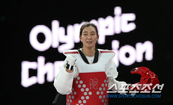 ◇런던올림픽 태권도 여자 67kg급에 출전한 한국의 황경선이 10일 밤(현지시각) 런던 엑셀 사우스 아레나에서 열린 결승에서 터키의 누르 타타르를 누르고 우승을 확정지은 뒤 기뻐하고 있다. 런던=올림픽사진공동취재단