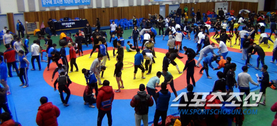 19일 강원도 양구 양구문화체육관에서 막을 올린 2013년 세계선수권대회 파견 레슬링 국가대표 1차 선발전. 2020년 하계올림픽 핵심종목 퇴출이라는 충격적인 소식을 접한 이후 열린 첫 대회였다. 내로라 하는 레슬링인들이 한 목소리를 내기 위해 모두 모였다. 퇴출을 막자는데 뜻을 모았다. 반면 선수들은 내색하지 않고 대회에만 집중했다. 양구문화체육관은 영하권의 추위 속에서도 뜨거웠다. 선발전을 위해 땀 흘리는 선수들이 내뿜는 뜨거운 열기가 가득했다. 경기 시작 2시간 전부터 경기를 준비하던 선수들은 매트 위를 구르며 기술을 최종 점검하는데 주력했다. 동료에게 힘을 실어주기 위한 함성도 가득했다.