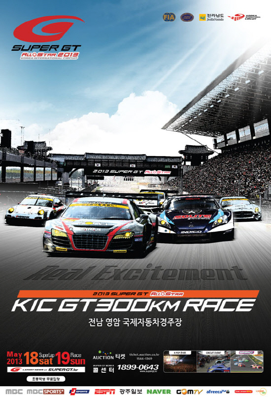 슈퍼GT코리아조직위원회(위원장 이명옥)는 오는 5월 18~19일 전남 영암 코리아 인터내셔널 서킷(KIC)에서 펼쳐질 '2013 슈퍼GT 올스타전'의 신규 포스터 2장을 26일 공개했다.