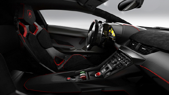 인테리어 역시 카본스킨이라는 탄소섬유 소재를 사용해 추가적인 경량화를 이뤘으며, 그 결과 베네노의 무게는 아벤타도르보다 125kg 가벼운 1,450kg로, 1.93kg/hp라는 획기적인 마력 당 중량비를 자랑한다.