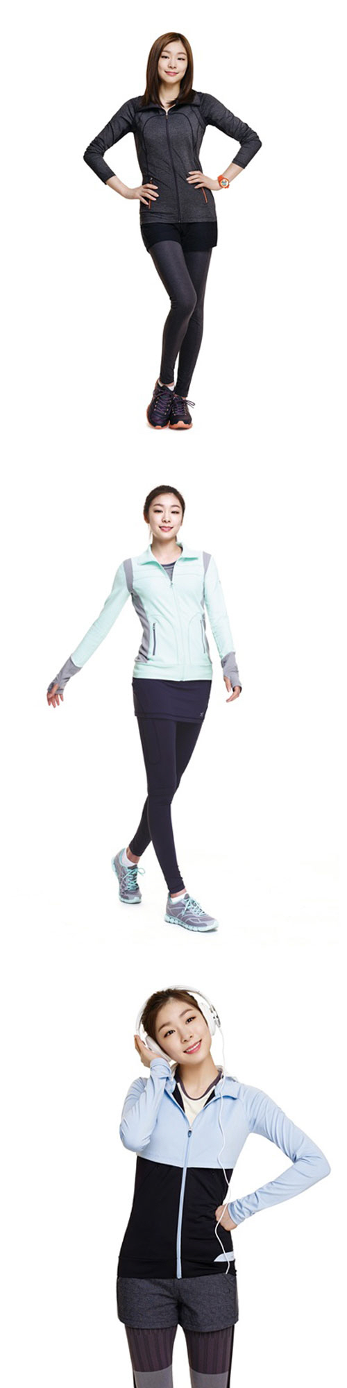 김연아는 트레이닝 재킷에 슬림한 레깅스와 가벼운 워킹화를 매치해 봄처럼 상큼한 워킹룩을 연출했다. 특히 치마 레깅스와 핫팬츠를 매치한 룩에서는 각선미를 드러내며 슬림하면서도 시크한 워킹패션을 완성했다.