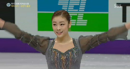 | 김연아가 프리스케이팅을 마친 뒤 환호하고 있다. 사진캡쳐=SBS TV |