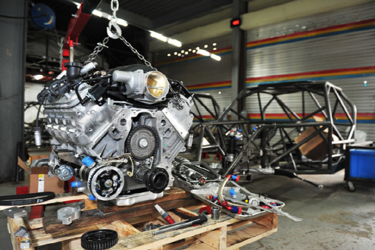 레이스카 바디 제작이 끝난 스톡카는 엔진과 미션을 비롯한 스톡카를 움직이기 위한 모든 부품 장착을 시작한다.