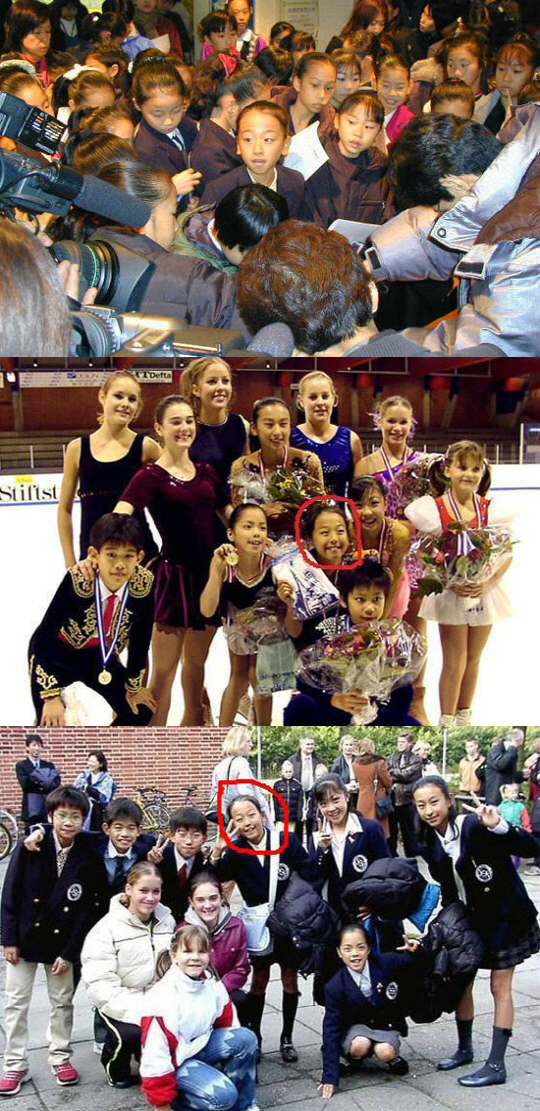 사진 속 아사다 마오는 머리를 단정히 묶은 채, 취재진들과 학교 친구들 사이에 둘러싸여 있는 모습이다. 앳된 모습의 마오는 많은 취재진에 약간 당황한 표정을 지어 보이기도 했다.