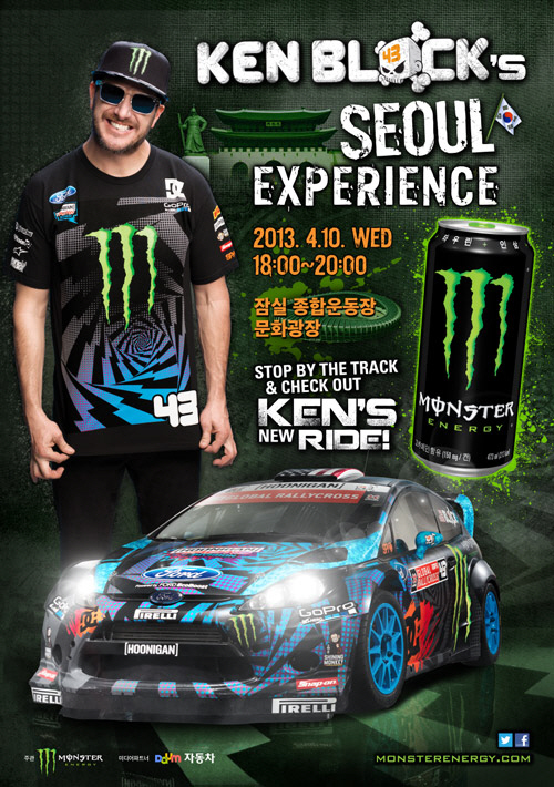 에너지드링크 몬스터에너지 코리아 주최, 국내 첫 런칭 행사로 열리는 짐카나 데모쇼 '켄 블락 코리아투어 2013 서울 익스피리언스'가 하루 앞으로 다가왔다.