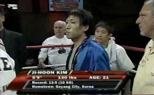 프로통산 24승(18KO) 8패의 전적을 가지고 있는 김지훈은 앞서 지난해 12월 미국 라스베이거스에서 열린 북미복싱연맹(NABF) 라이트급 타이틀 매치에서 챔피언 레이몬드 벨트란(멕시코)을 상대로 1라운드에 다운을 빼앗는 등 경기 초반 좋은 페이스를 나타냈으나 후반 들어 체력이 급격히 떨어지는 바람에 벨트란에게 매 라운드 많은 정타를 허용, 결국 심판 전원 일치로 판정패했다.