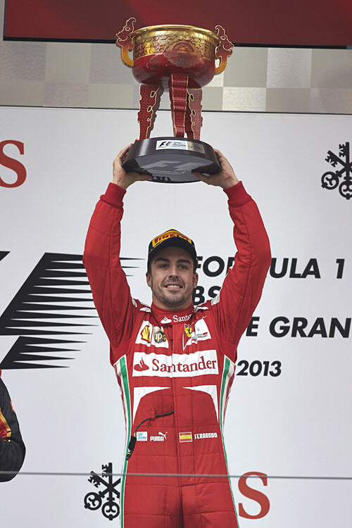 알론소가 중국 그랑프리 우승을 차지하면서 2013년 F1 그랑프리는 현재까지 로터스, 레드불, 페라리가 한 차례 씩 우승을 기록하며 월드 챔피언 경쟁이 한층 치열해졌다.