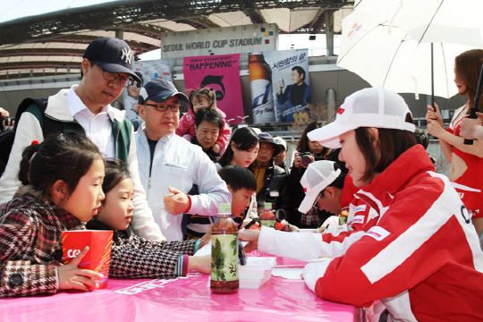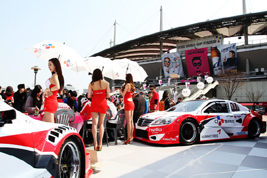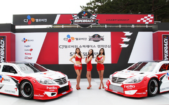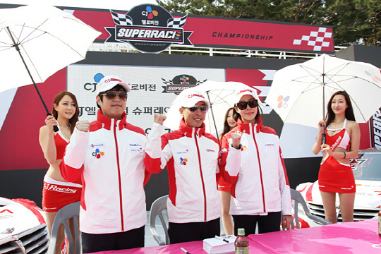 국내 최고 권위의 자동차경주대회 2013 CJ헬로비전 슈퍼레이스가 13일 국제가수 싸이의 신곡 '젠틀맨'을 공개한 서울 상암동 월드컵경기장에서 CJ레이싱팀과 함께 본격적인 모터스포츠 홍보마케팅을 펼쳤다. CJ레이싱팀은 김의수, 황진우, 이화선 등 드라이버 3인방과 한국형 스톡카 슈퍼6000 머신을 팬들 앞에 모습을 드러냈다.